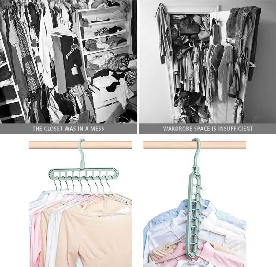 Olvídate del desorden y aprovecha cada rincón con el KIT de 10 Colgadores Ahorradores de Espacio. Más organización, menos estrés. 🚀.